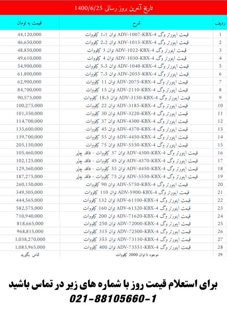 لیست قیمت درایو های وگ (جفران)